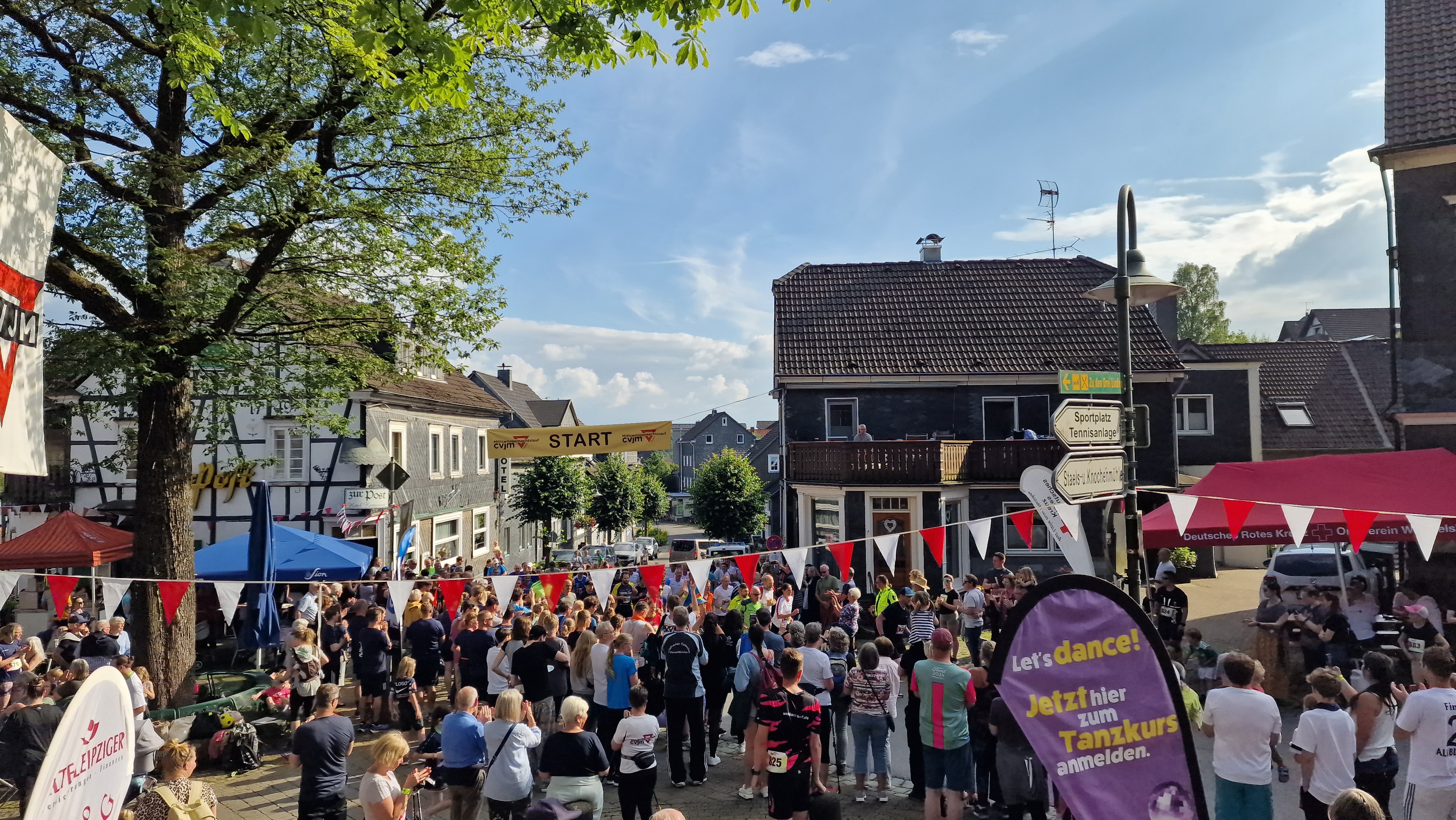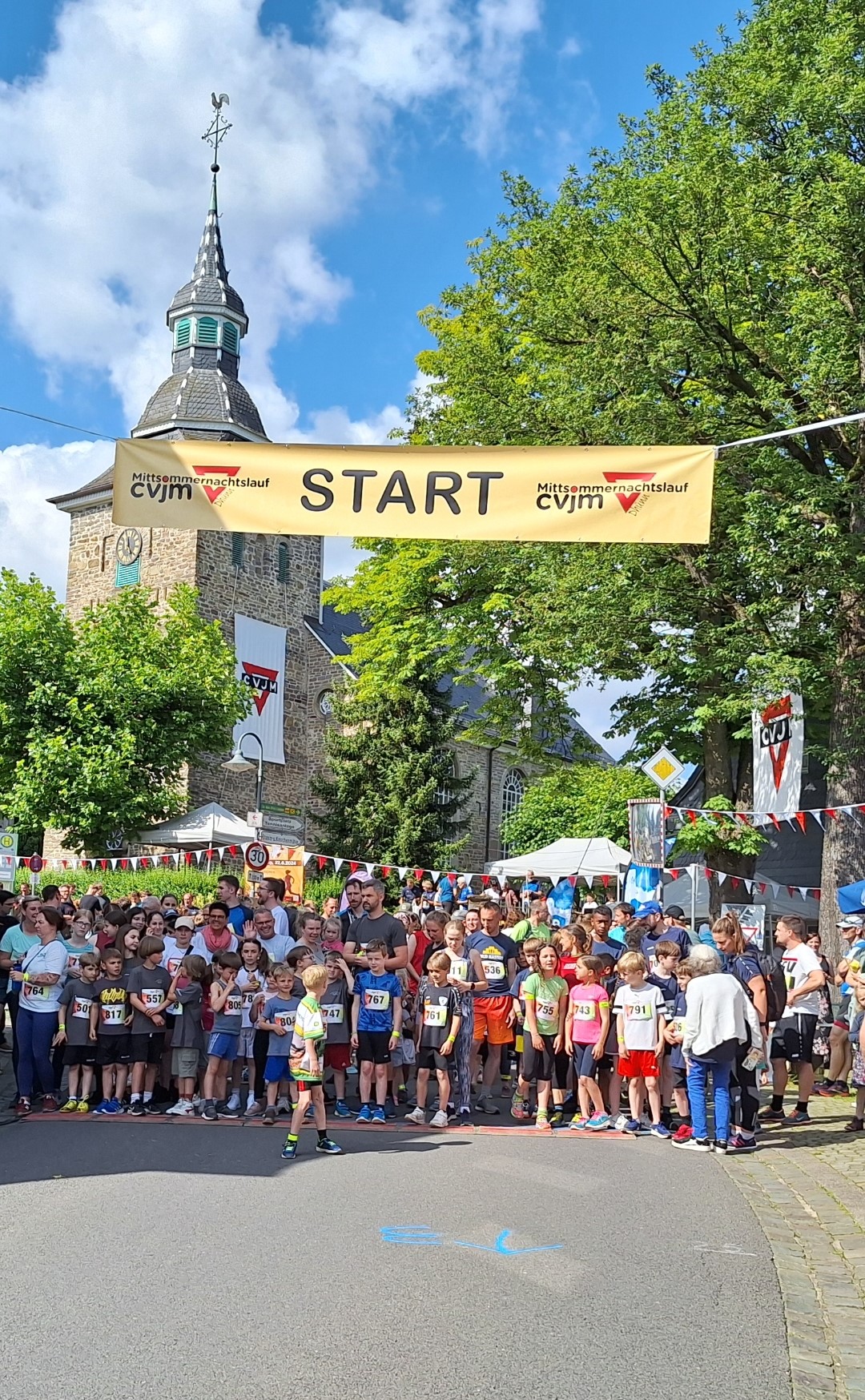 Schon vor Wochen machten die großen Plakate und Banner im Dorf auf den bereits traditionellen CVJM Mittsommernachtslauf aufmerksam, und die großen CVJM Fahnen am Kirchturm und an der Friedenseiche lockten wieder viele Laufbegeisterte aus Nah und Fern an den Start.